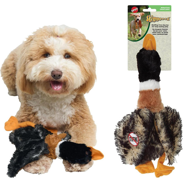 Introduce your beloved furry companion to the SPOT Skinneeez Mini Mallard Duck, a delightful and engaging dog toy designed to entertain hours of playtime. Measuring 13 inches in length, this stuffing-free squeaky toy features realistic designs that mimic a true mallard duck, ensuring your pet will be excited to fetch, tug, and cuddle with it. Its soft exterior is perfect for gentle play, while the absence of harmful stuffing means no mess when your pup plays too hard. Ideal for dogs of all sizes, this charming duck will soon become your dog's favorite plaything.